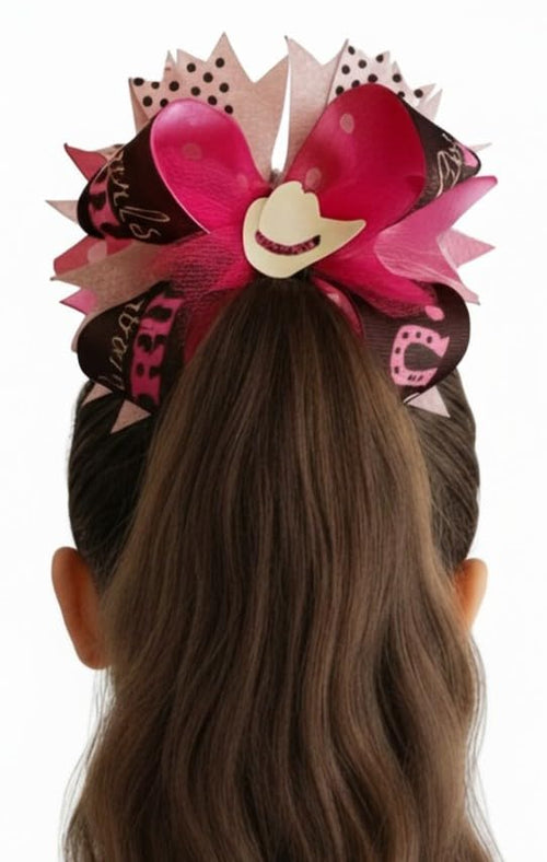 Cowgirl Hair Bow for Girls - 5 Inch Western Style Hair Clip Accessory for Kids